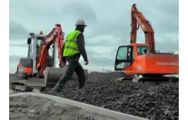 • 鋪路機將沙子運輸平攤,施工現場實拍